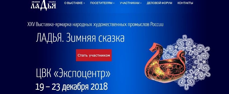 С 19 по 23 декабря 2018 года в ЦВК «Экспоцентр» (г. Москва) состоится ХХV выставка-ярмарка народных художественных промыслов России «ЛАДЬЯ. Зимняя сказка – 2018»